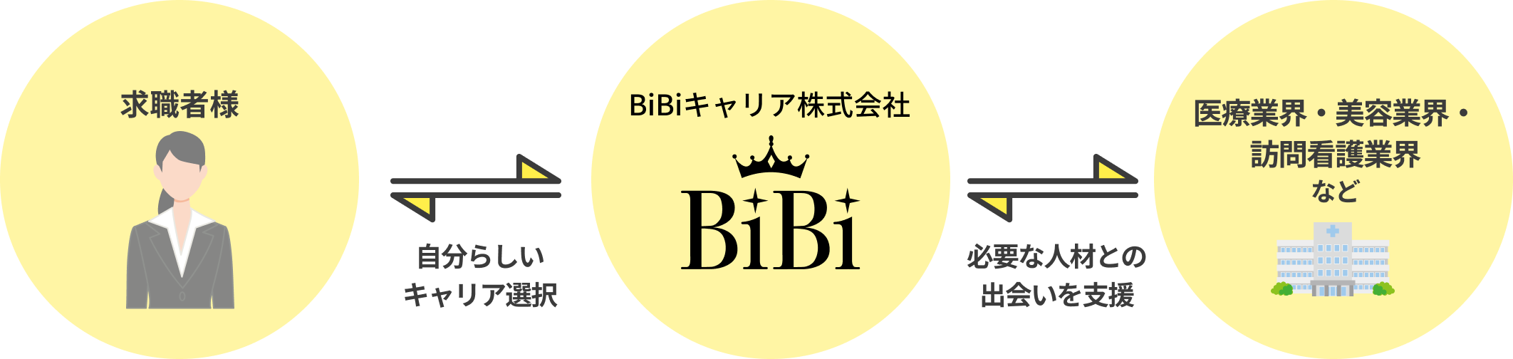 BiBiキャリアは、医療・美容・訪問看護といった専門性の高い分野に特化した人材紹介サービスです。